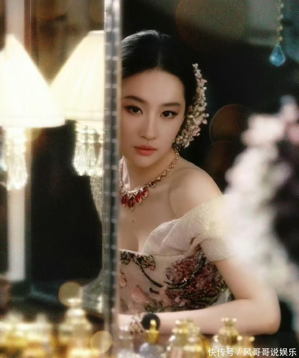 那高耸的希腊鼻,丹凤眼,含笑的唇珠,挽起的秀发在熠熠生辉的珠光宝气里,更衬托得肤白貌美。