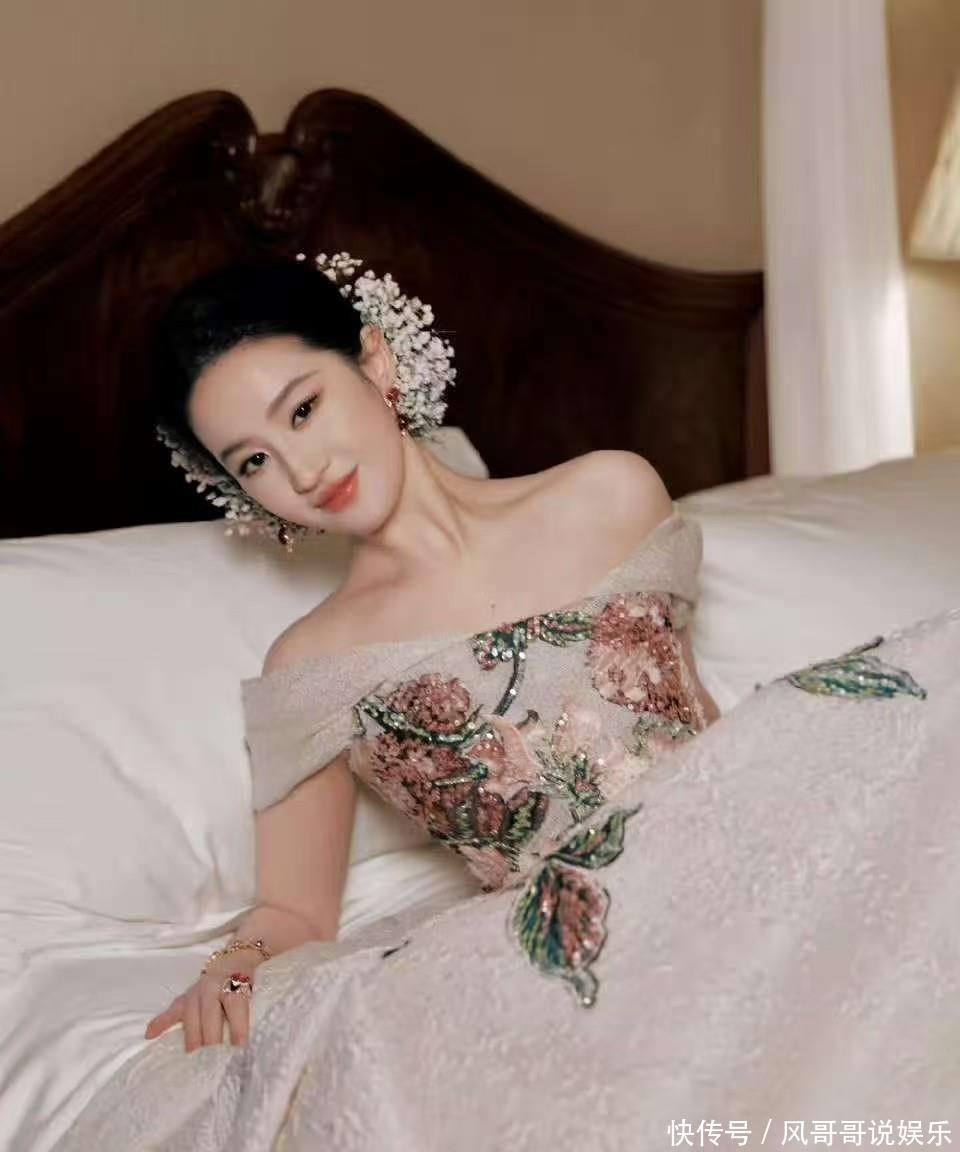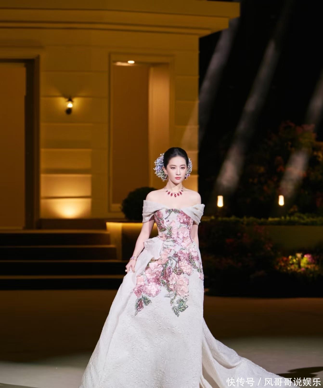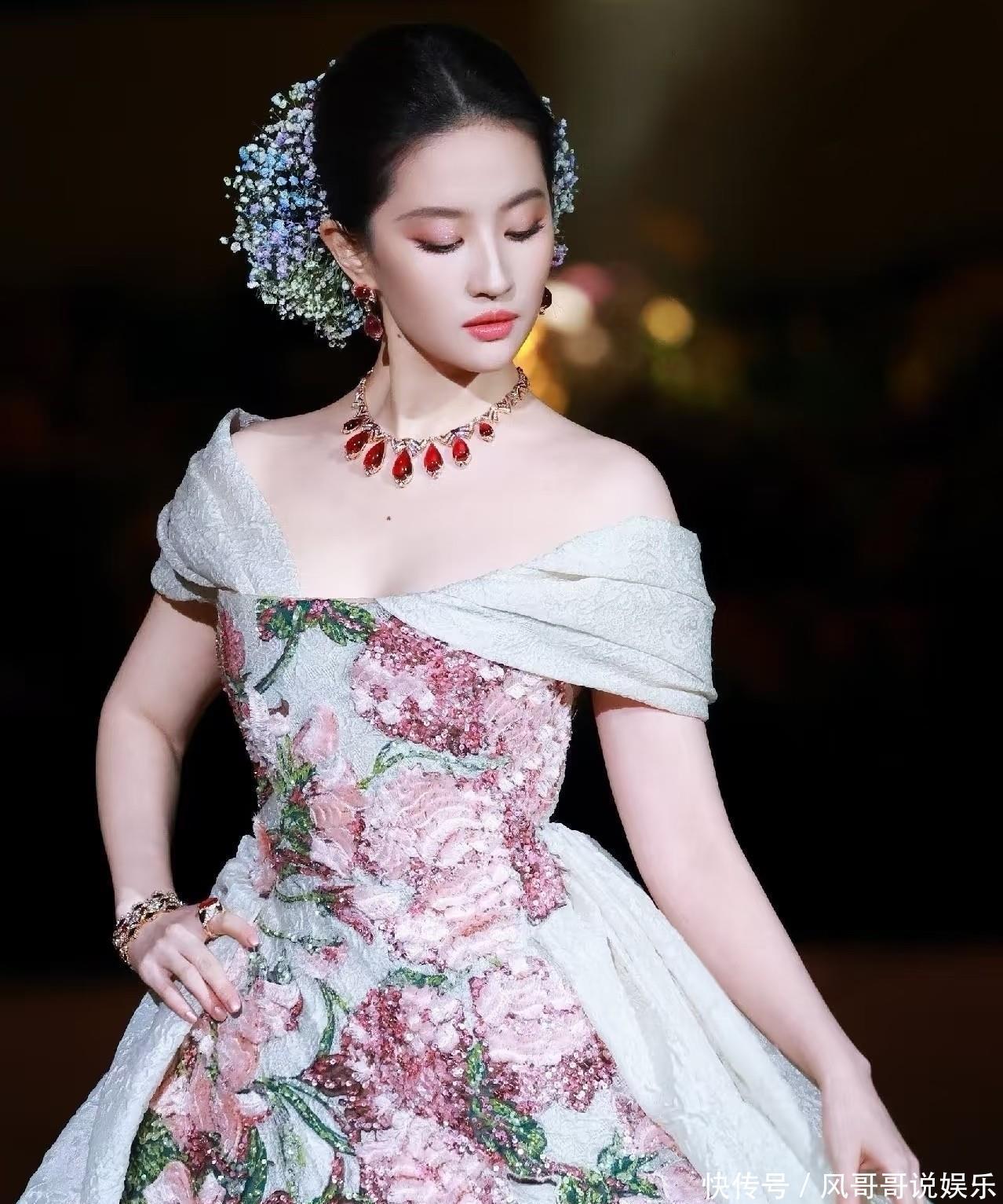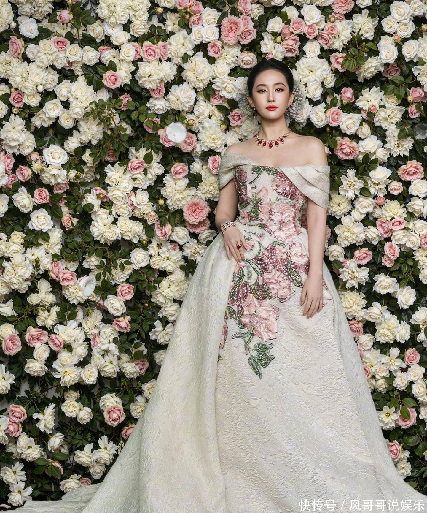 露肩的礼服烘托着丰腴的香肩,她并没有像一般女星那样,可以减重瘦成锁骨刀锋战士。