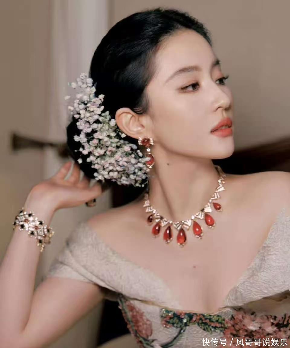 刘亦菲身穿Louis Vuitton特别定制,佩戴BVLGARI珠宝亮相。