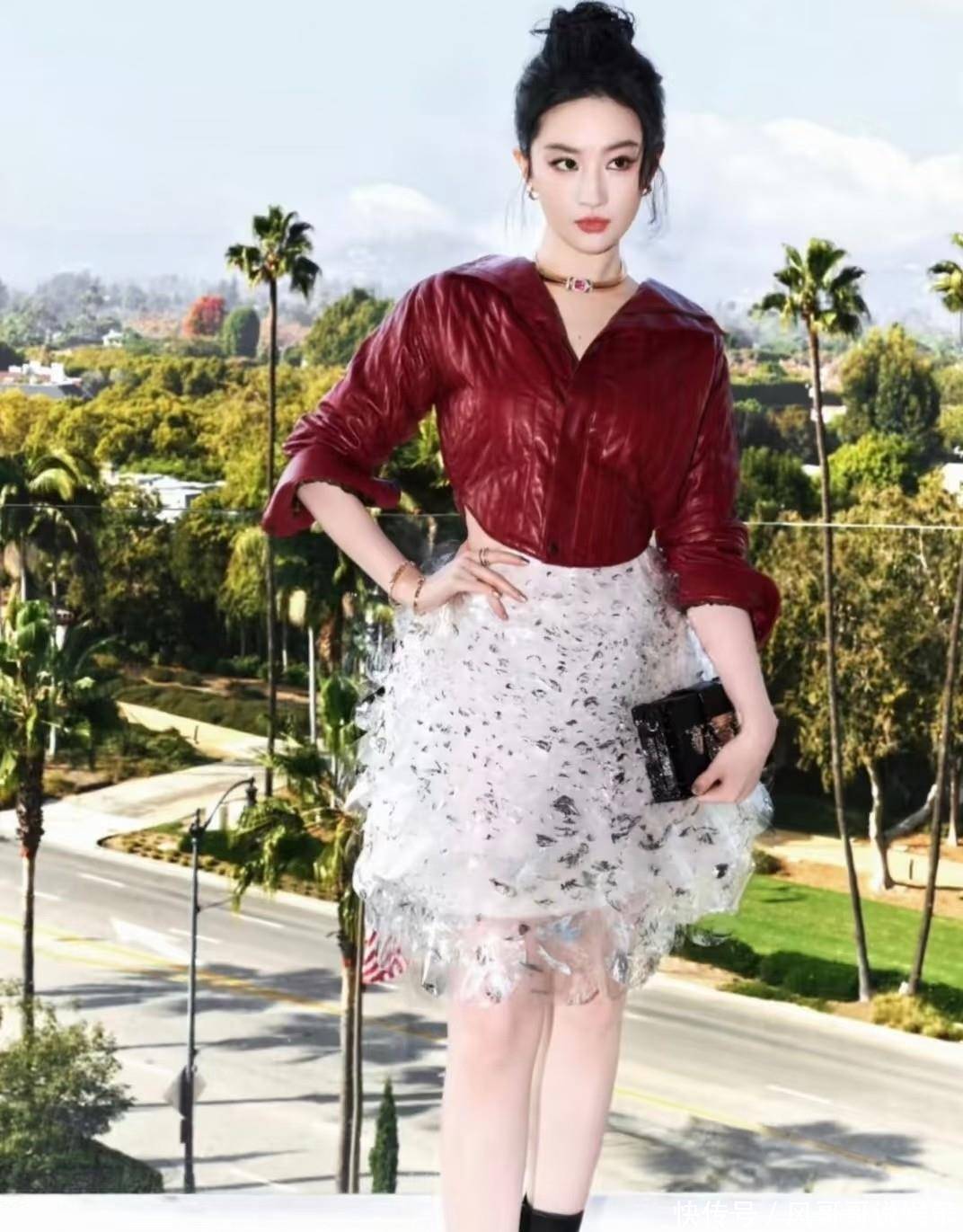 这身酒红“木兰红”皮革上衣致敬“木兰”角色,与纱裙装碰撞出刚柔并济的时尚火花,花木兰的飒与时尚lcon的美完美融合。